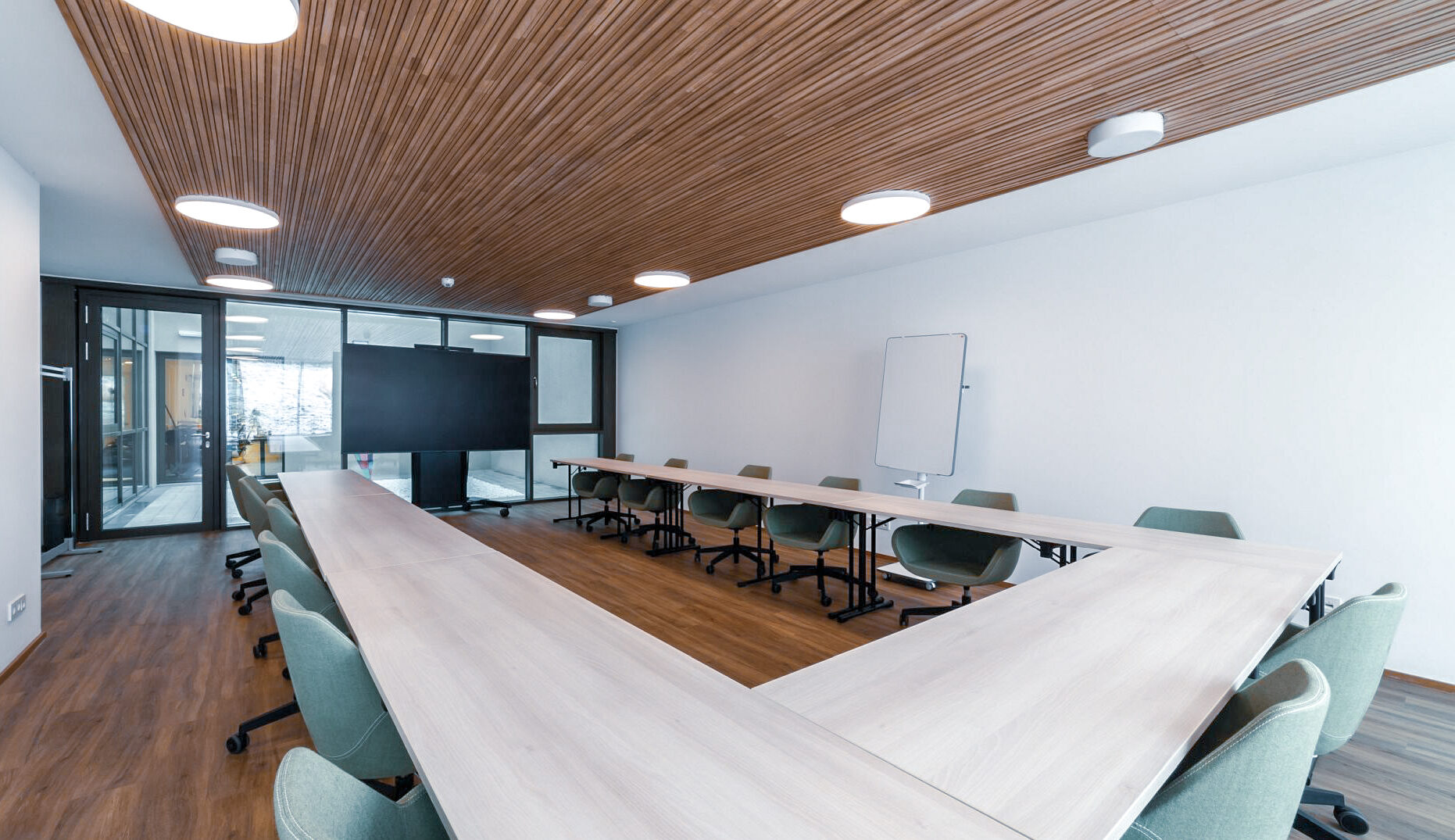 Zwei Tagungsräume (60 m² und 70 m²), ausgestattet mit moderner Technik, bieten Raum für konzentriertes Arbeiten, kreativen Austausch und inspirierende Gespräche – in Ruhiger Lage und mit viel natürlichem Licht.